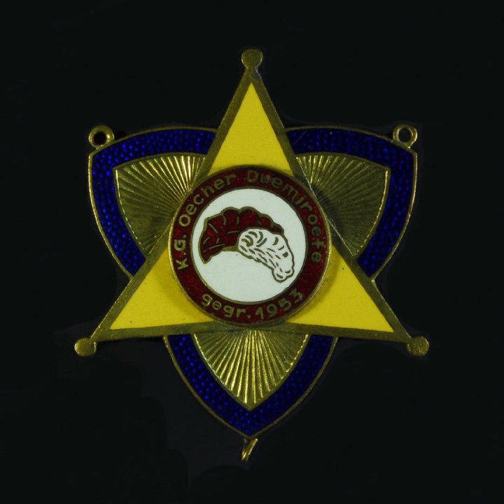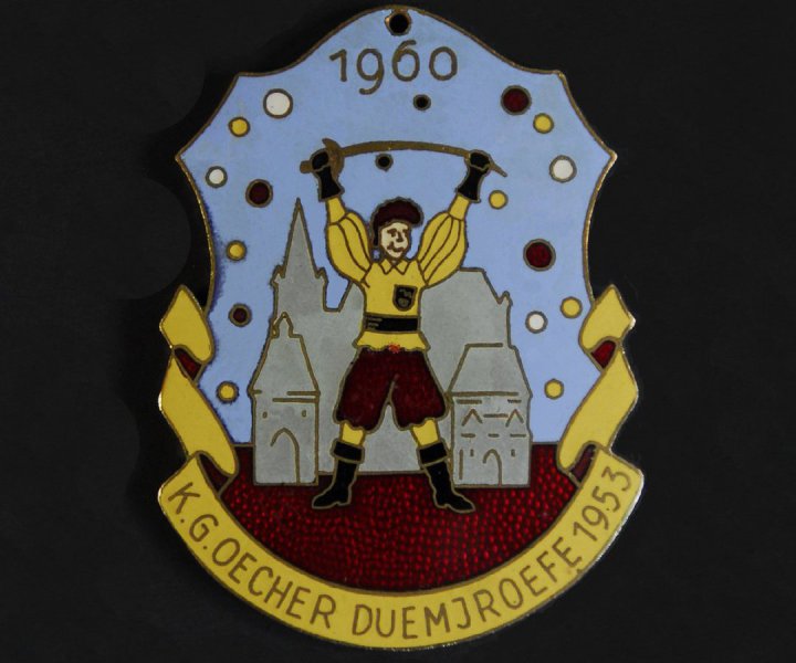 Duemjroef auf Wappenorden und Rathaus-Silouette ohne Jahreszahl